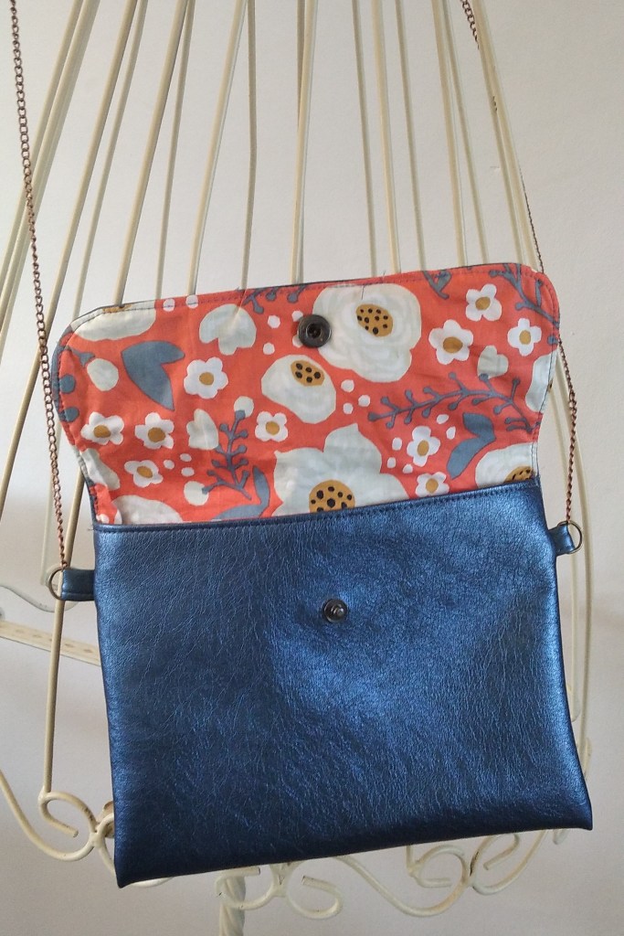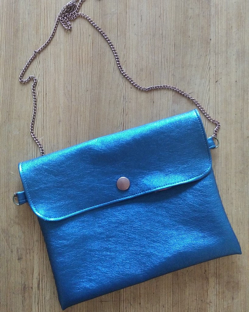 En juin, après avoir cousu une jolie pochette de mariage en similicuir pour une amie, j’ai eu envie de tenter cette petite besace dans ces matériaux en remplaçant le lien en coton de la bandoulière par une chaîne métallique et la pression kam par une pression métal et là le rendu était complètement différent ! Directement adopté par la rédactrice de Lise tendances, c’est le tutoriel que vous retrouvez dans le dernier numéro spécial Sacs en kiosque actuellement !