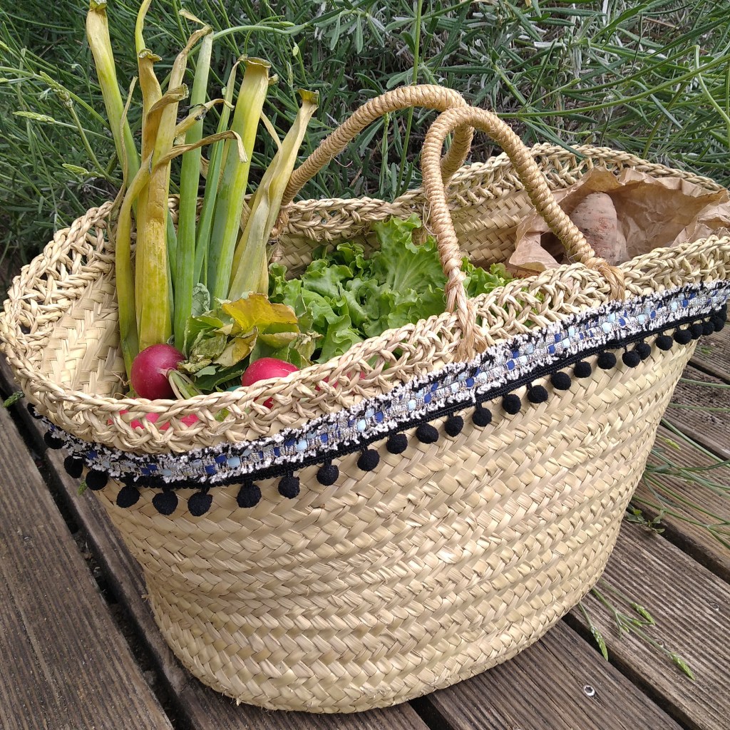 Je vous y montre deux méthodes pour customiser un panier : avec des galons de différents types ou avec une bande de tissu froncé.