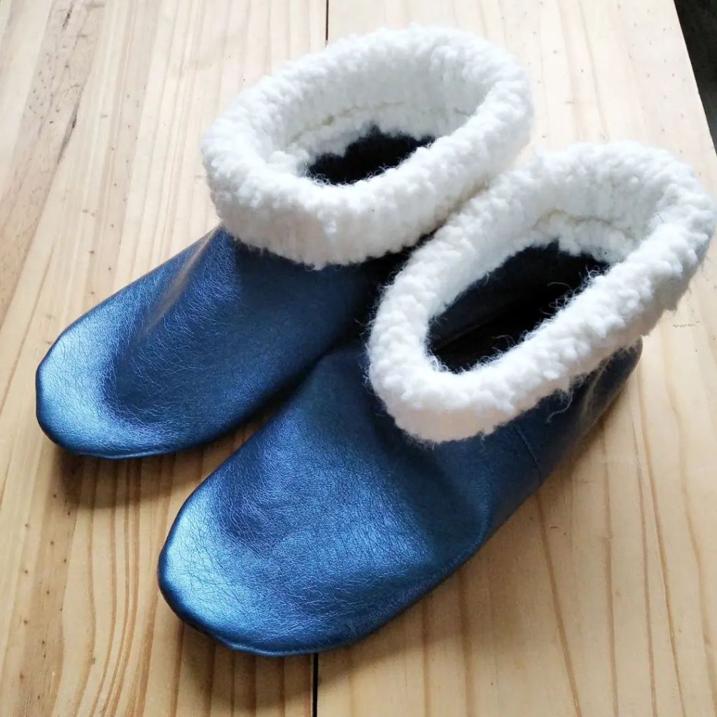 Quand Mélanie, créatrice de la marque Feye a lancé ses modèles de chaussons il y a quelques années, je les ai tout de suite trouvés très chouettes mais ce n’est que maintenant que j’ai acheté le patron du modèle To the moon, (la version à moumoute!) pour offrir à ma sœur. Chutes de similicuir bleu, bandes de laine duveteuse tricotées, semelles en vrai cuir : ce cadeau a été très apprécié et c’est une couture accessible au débutant sans problème !